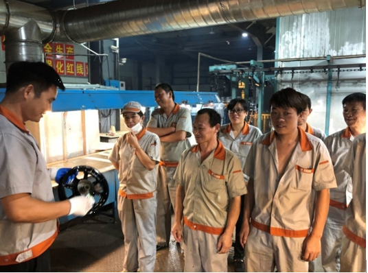 2019年9月17日,針對前期本田客戶反饋特黑GJBA軸套與制動轂周邊出現白色異物的情況,生產部特組織對GJBA擦修工序員工展開擦銹技能培訓,此次培訓由涂裝車間主任朱新華主講,分別結合實際案例、作業指導書、現場操作等形式展開培訓,以求達到更好培訓效果。