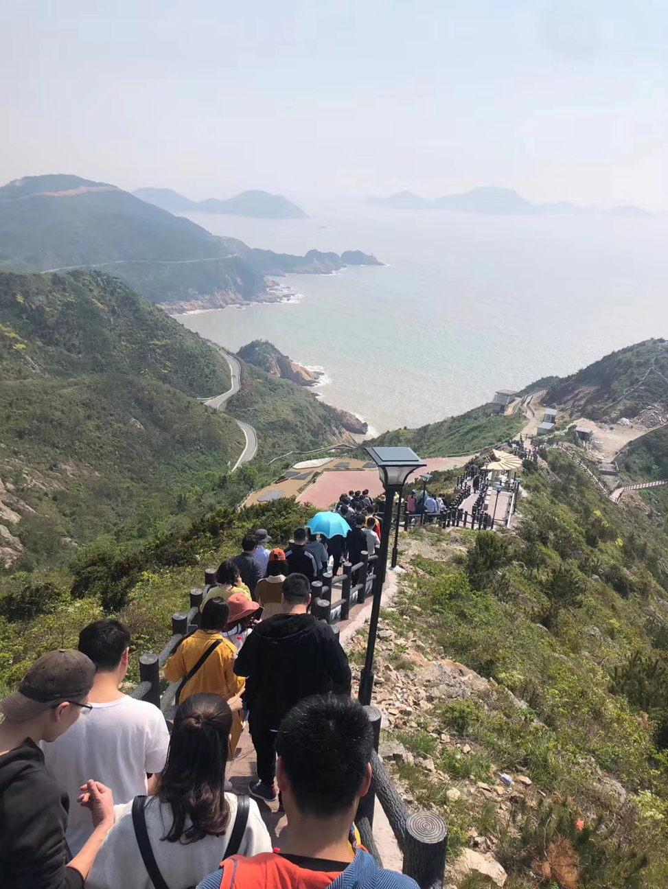 一個一個緊緊跟隨著,充滿著激情,一步一往上攀登,最終抵達綠道至高點:網紅觀景臺,并在這里留下勝利的笑影。海風陣陣,吹干了路程中留下的汗水。站在最高點上放眼望去,著實有“一覽眾山小”的感覺。這讓大家感觸到,只有奮勇攀登,堅持到底,才可一覽無限風光!