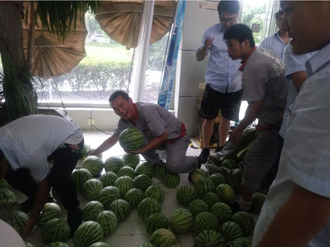 當(dāng)天,隨著鎮(zhèn)工會運輸車的開進,企業(yè)各部門組織員工積極幫忙搬運,各個臉上洋溢著喜悅,大家一起幫忙將西瓜、飲品、防暑降溫等用品送達到員工手中,這意味著將公司的這份關(guān)懷傳遞到了員工們的心中,給炎炎夏日帶來了一縷清涼。