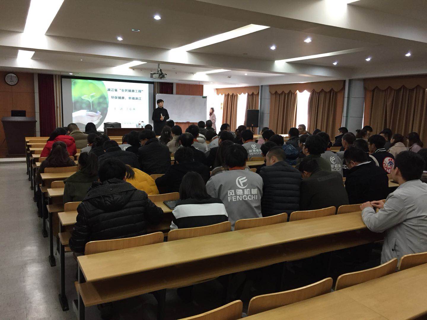 2018年1月17日浙江新生活環境保護宣教中心走進風馳進行有關全民環保健康,共創美麗浙江的宣講活動,宣傳內容為環保衛生,垃圾分類,職工亞健康。
