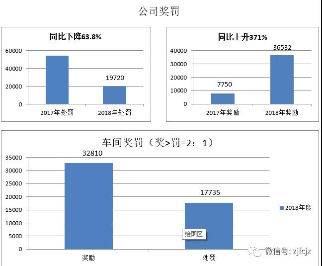 為了激勵(lì)員工時(shí)刻圍繞公司的核心價(jià)值觀,鼓勵(lì)員工奮發(fā)向上,促進(jìn)企業(yè)不斷完善改進(jìn),做到獎(jiǎng)罰分明,堅(jiān)持以獎(jiǎng)勵(lì)/處罰=2:1原則,公司制定了《公司獎(jiǎng)罰管理制度》和《車(chē)間獎(jiǎng)罰管理辦法》,雙管齊下,2018年相比2017年獎(jiǎng)勵(lì)金額同比上升371%,處罰金額同比下降63.8%,違章次數(shù)同比下降69.7%,管理上有了很大的提升,數(shù)據(jù)體現(xiàn)如下: