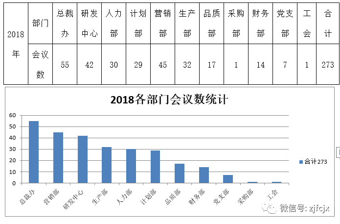 根據(jù)《公司會(huì)議管理制度》規(guī)定要求,各部門(mén)需用到公司會(huì)議室的會(huì)議需以《會(huì)議通知》的形式到總裁辦進(jìn)行登記,同時(shí)以《會(huì)議紀(jì)要》的形式到總裁辦進(jìn)行備案。經(jīng)2018年各部門(mén)到總裁辦會(huì)議數(shù)統(tǒng)計(jì)如下: